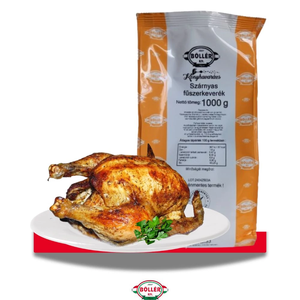 A Konyhavarázs Szárnyas fűszerkeverék a csirke-, pulyka- és más szárnyasételek megbízható társa. Klasszikus, enyhén pikáns és fűszerpaprikás keverék, amely természetesen emeli ki a szárnyas húsok zamatos ízét. Egyenletes szemcsemérete és jól kiegyensúlyozott összetétele ideálissá teszi nagyobb mennyiségű hús ízesítésére is.